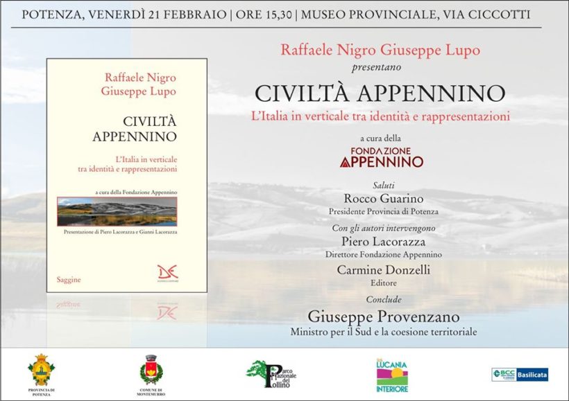 E’ il programma per il prossimo 21 febbraio, nel museo provinciale di Potenza, la prima presentazione ufficiale di “Civiltà Appennino“, il volume di Giuseppe Lupo e Raffaele Nigro, curato dalla Fondazione Appennino per Donzelli Editore.