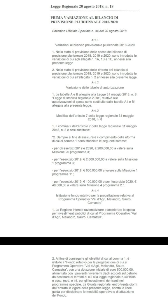 Ne ho già parlato nei giorni scorsi: i soldi aggiuntivi ci sono – quota IRES, aumento canoni di concessioni, royalties Total e compensazioni ambientali – mancano le idee. Ne ho qualcuna, ne parleremo.
